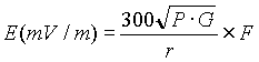 式中: P──发射机功率,KW; r──被测点与发射天线的距离,Km; G──相对于接地基本振子的天线增益,DB; F──地面的衰减系数; X──数量距离; λ──波长,m; ε──介电常数; δ──导电系数,1/Ω·m。 A.2.5.2 短波(水平极化波)场强计算公式: 短波 (水平级化波)场强计算公式同式(A 1 )、(A 2 ),但其中X按式(A4)计算: